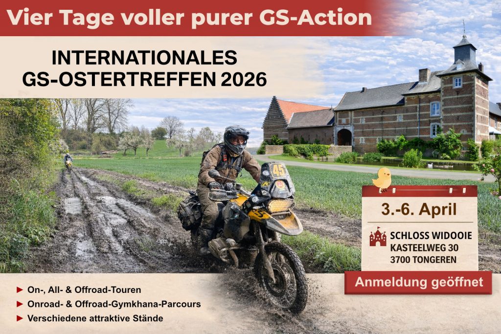 Vom 3. bis 6. April 2026 treffen sich GS-Fahrer aus dem In- und Ausland am Schloss Widooie zum Internationalen GS-Ostertreffen.